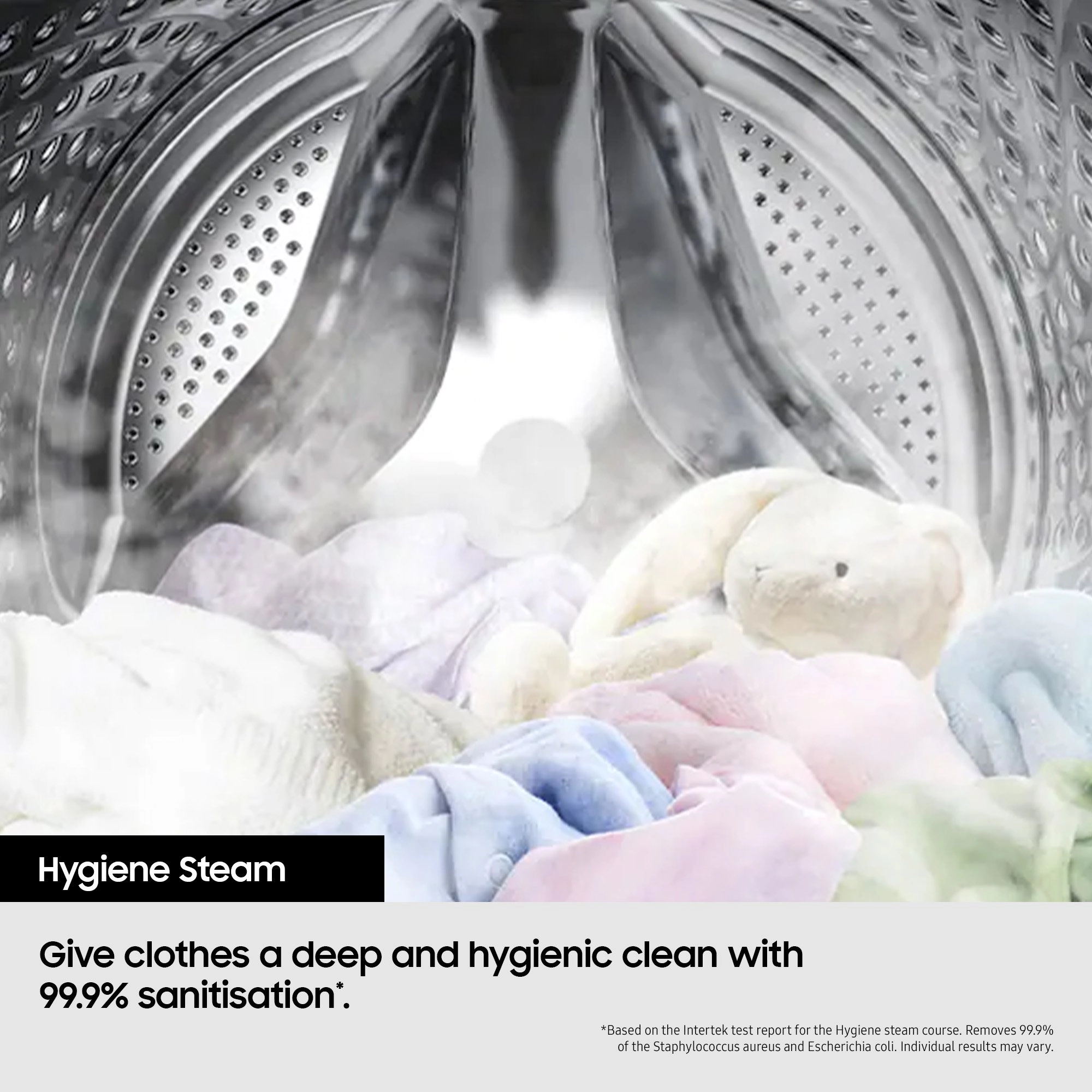 Hygiene Steam – Releases steam to remove bacteria and allergens for hygienic laundry.